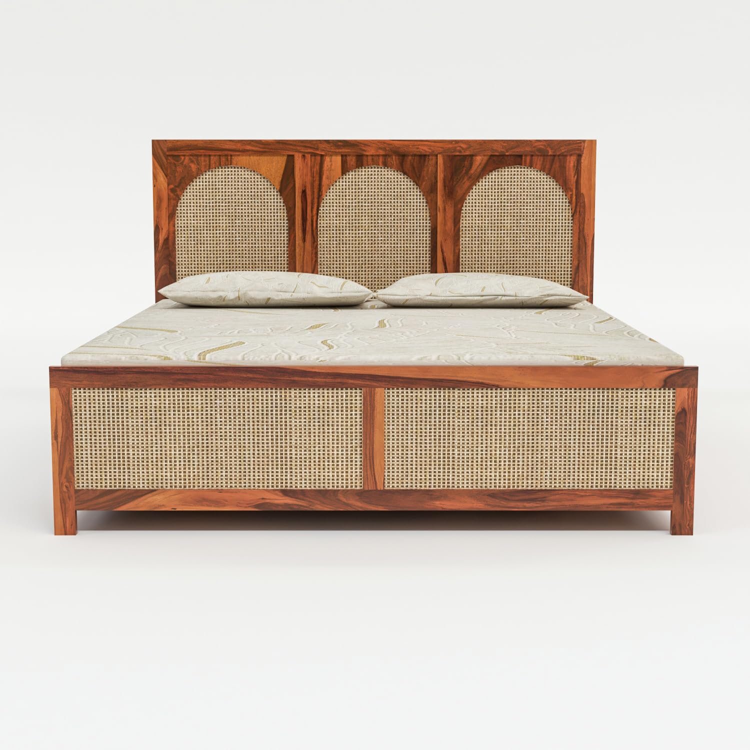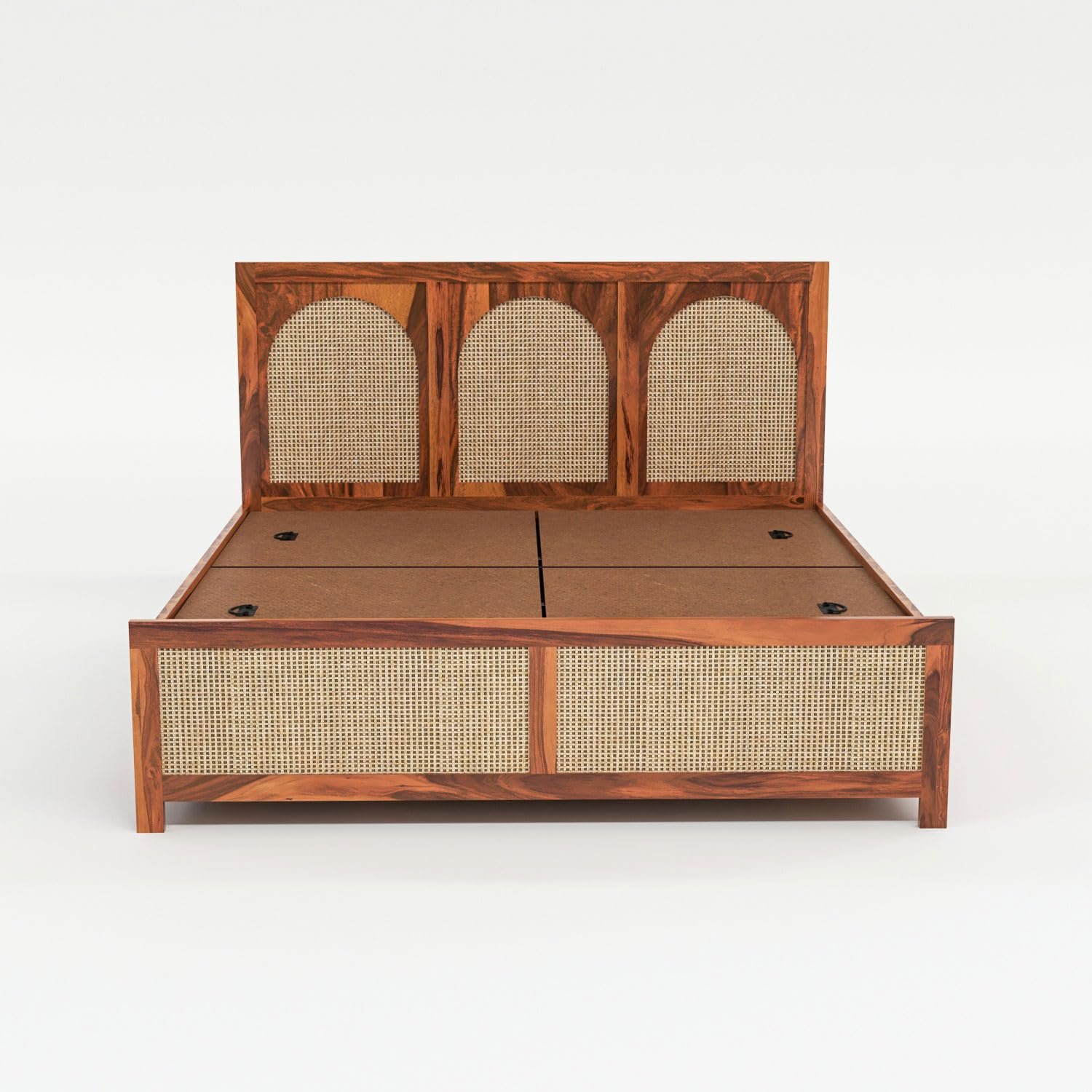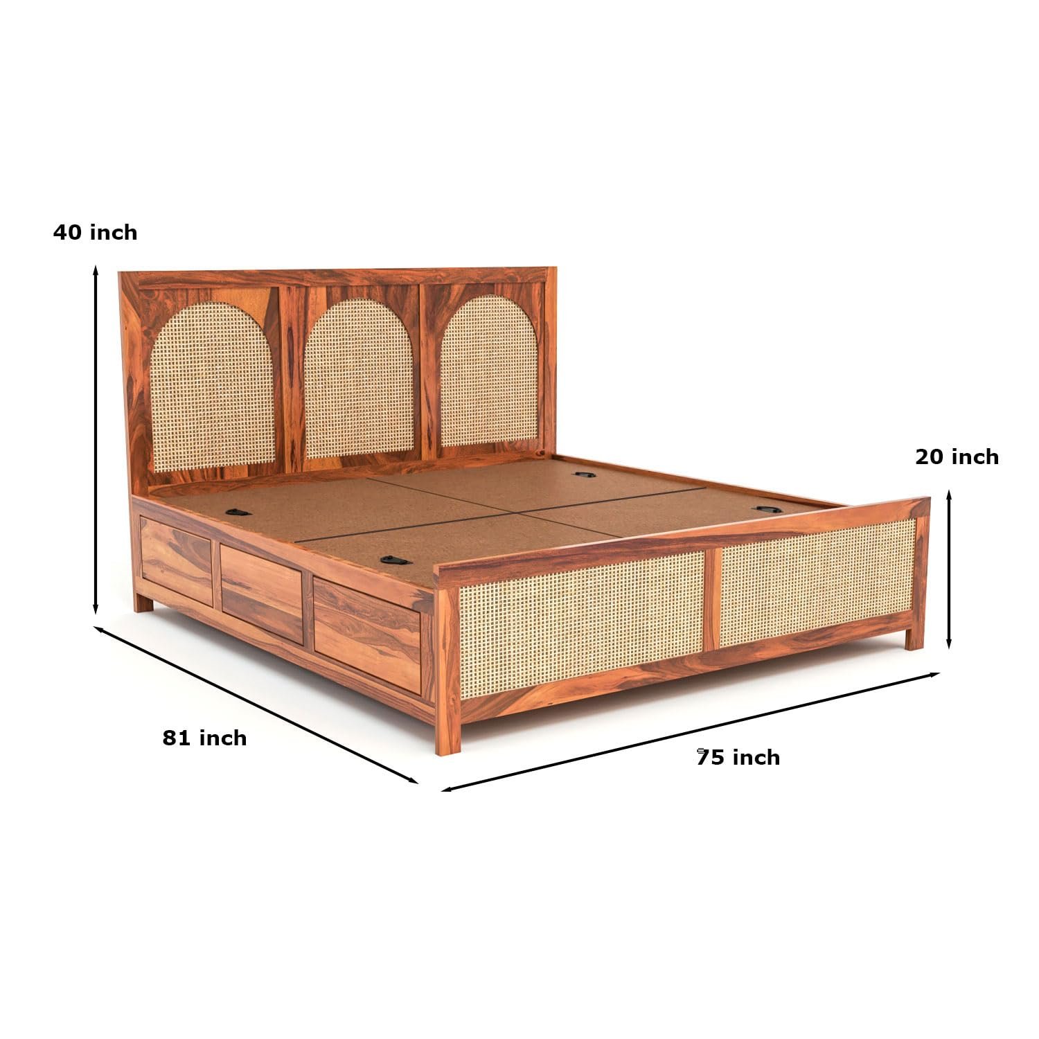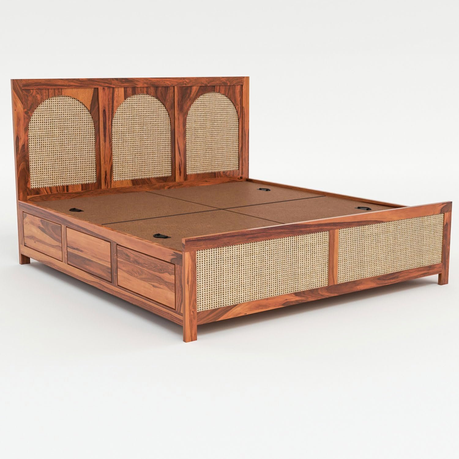 Solid Sheesham Wood Bed with Headboard & Box Storage