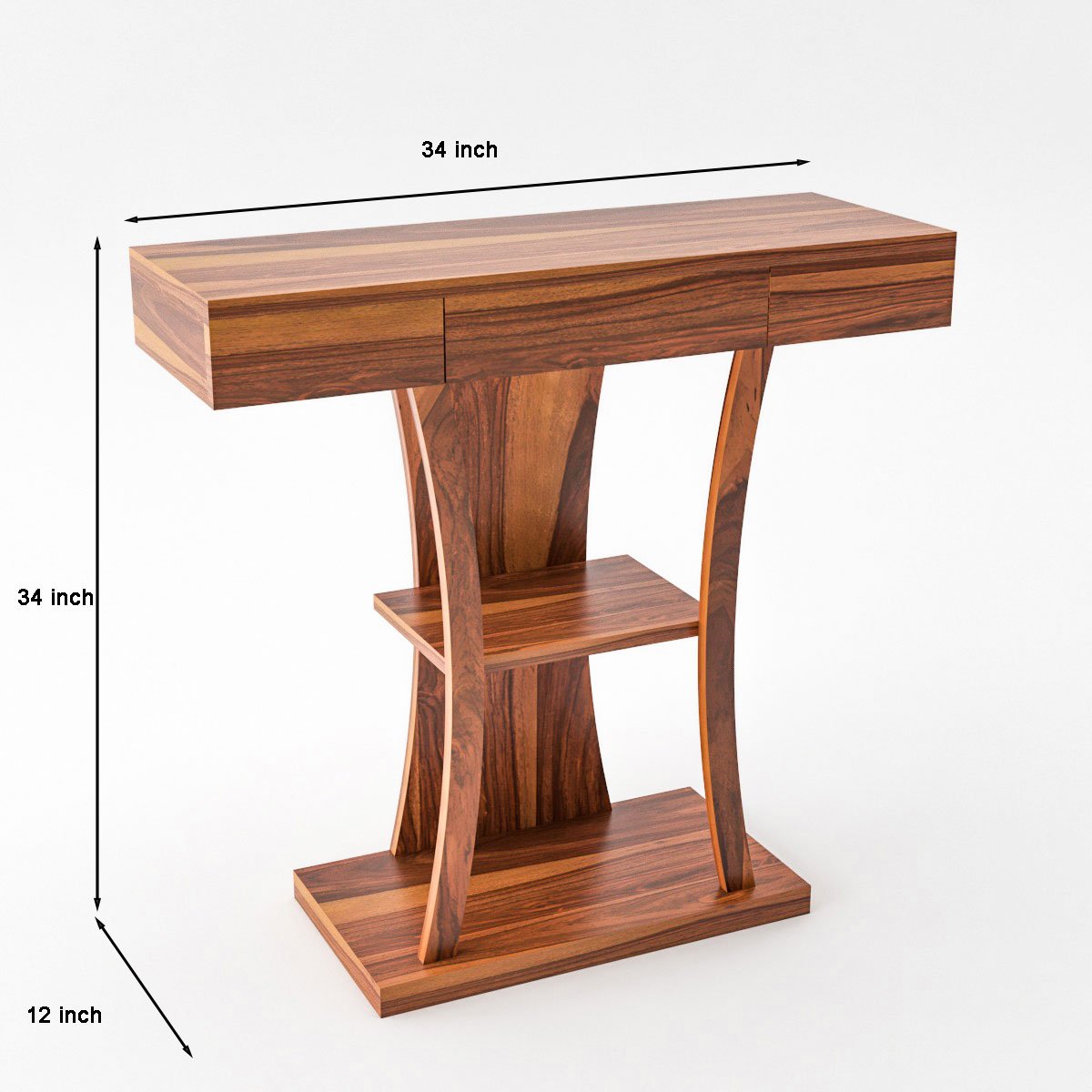 • Sheesham Wood: Crafted from quality Sheesham wood, this console table exudes elegance and durability, Stylish Design: The sleek design of this console table makes it a perfect addition to your living room, entryway, or office, enhancing the aesthetics of any space.