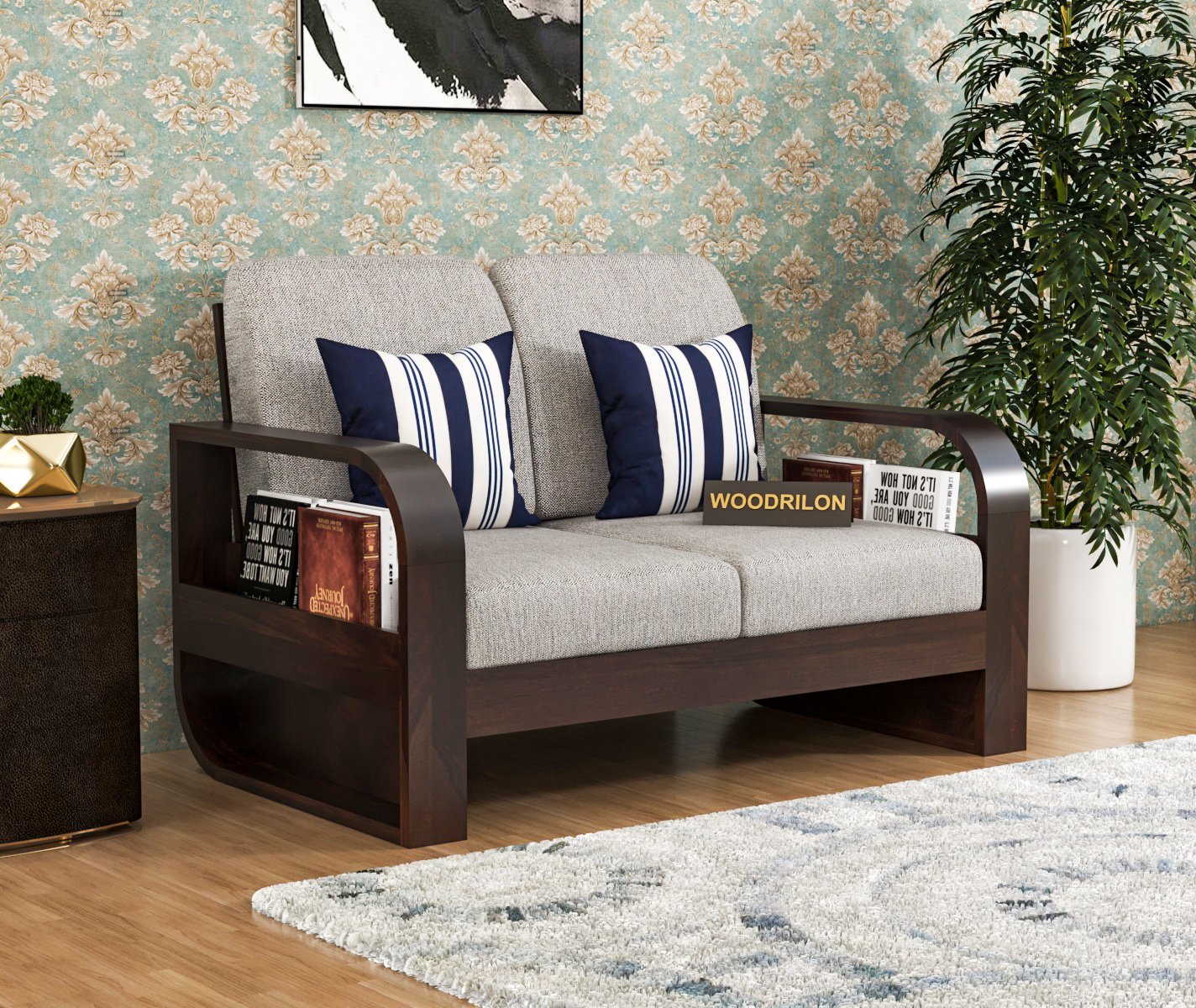 Solid Sheesham Wood 2 Seater Sofa Set Walnut for Living Room Home Office Solid Wood Sofa Set Furniture Wooden Two Seater Sofa Set (Walnut)