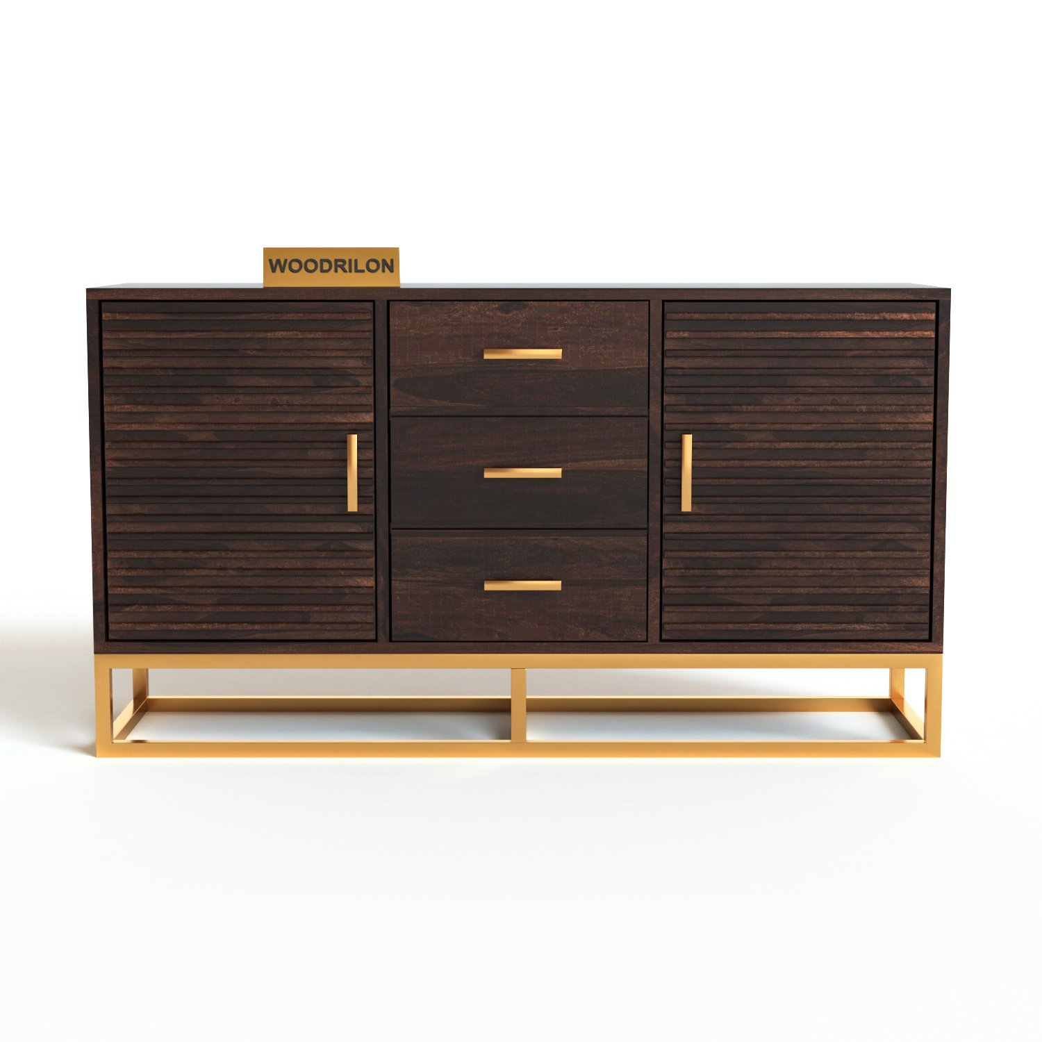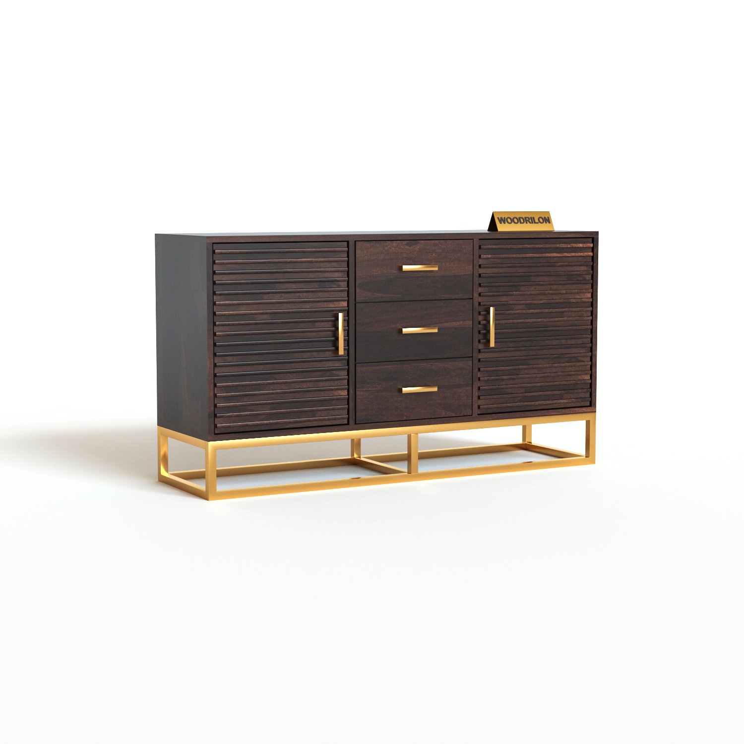 Solid Sheesham Wood Sideboard Cabinet with 3 Drawers & 2 Doors (Walnut Finish) | Buffet Sideboard Cabinet with Metal Base | Wooden Console Cabinet (Walnut Finish) | Wooden Sideboard Cabinet for Living Room |