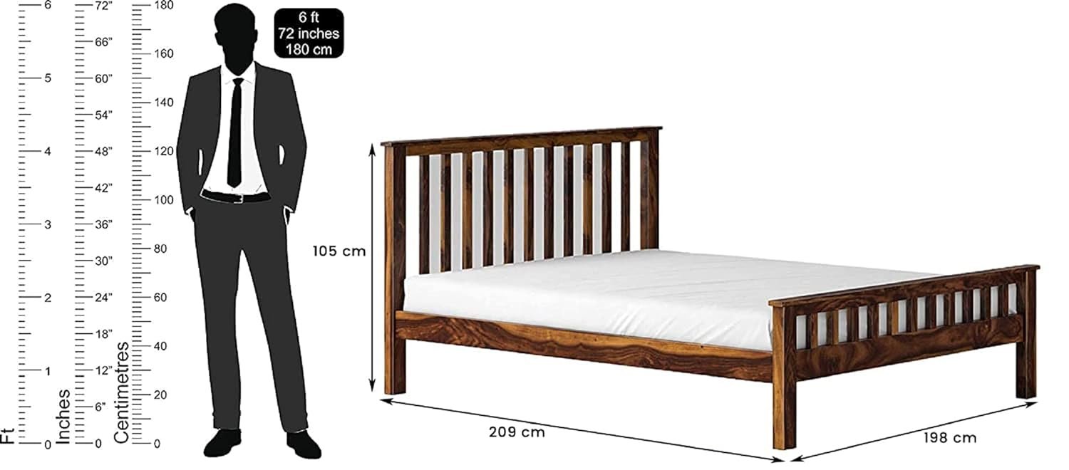 Sheesham Wood – Made from good-quality solid Sheesham wood (Rosewood) with a rich honey finish, offering durability, strength, and natural wood grain patterns for timeless beauty in your bedroom.